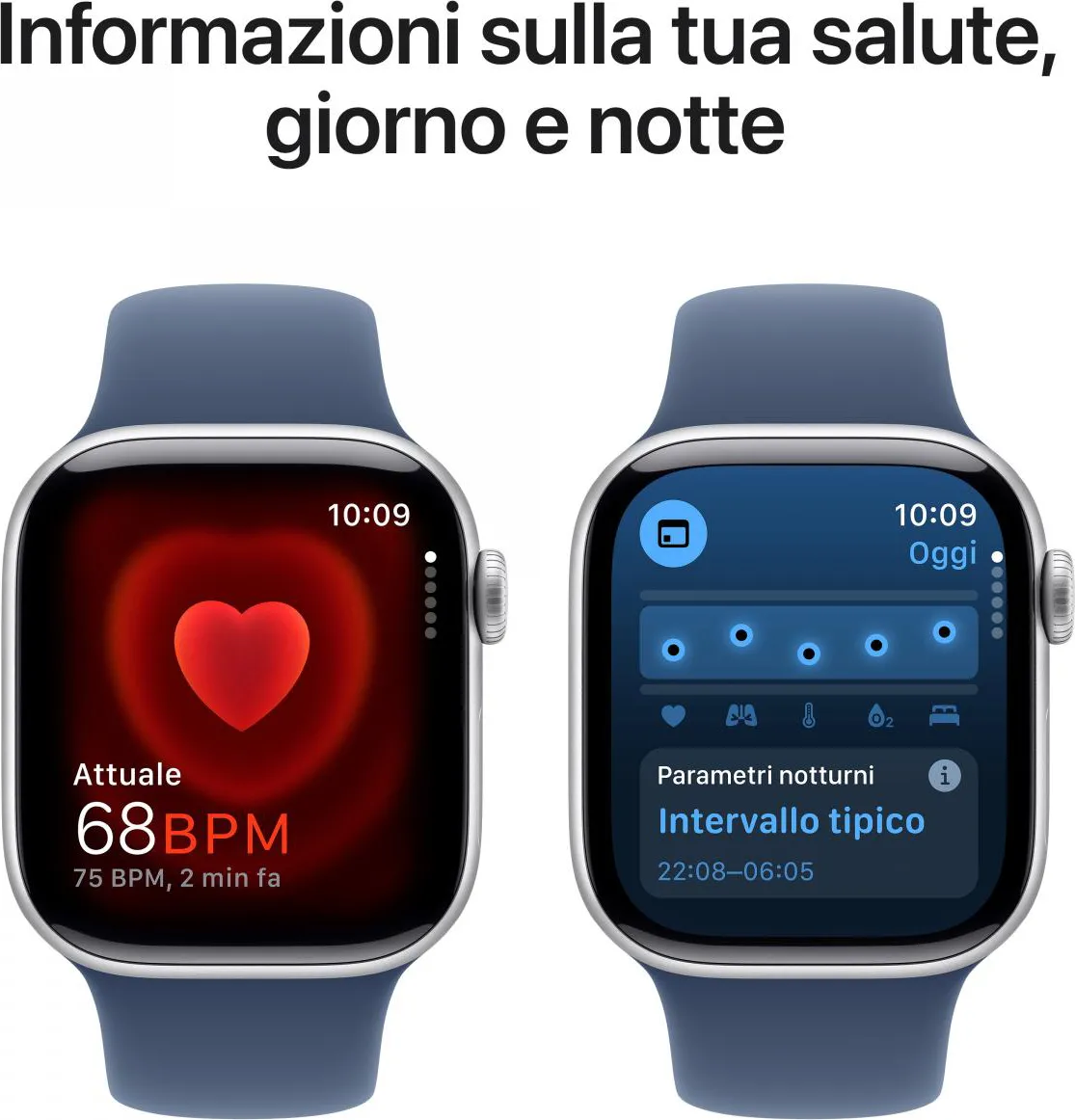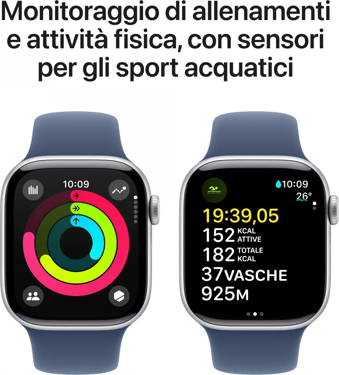 - PERCHÉ APPLE WATCH SERIES 10 - Display fino al 30% più ampio. Design più sottile, leggero e comodo. Funzioni evolute per la salute e il fitness che forniscono informazioni preziose. Funzioni per la sicurezza, per chiamare i soccorsi quando serve. Ricarica più rapida: 30 minuti per portare la batteria all'80%.