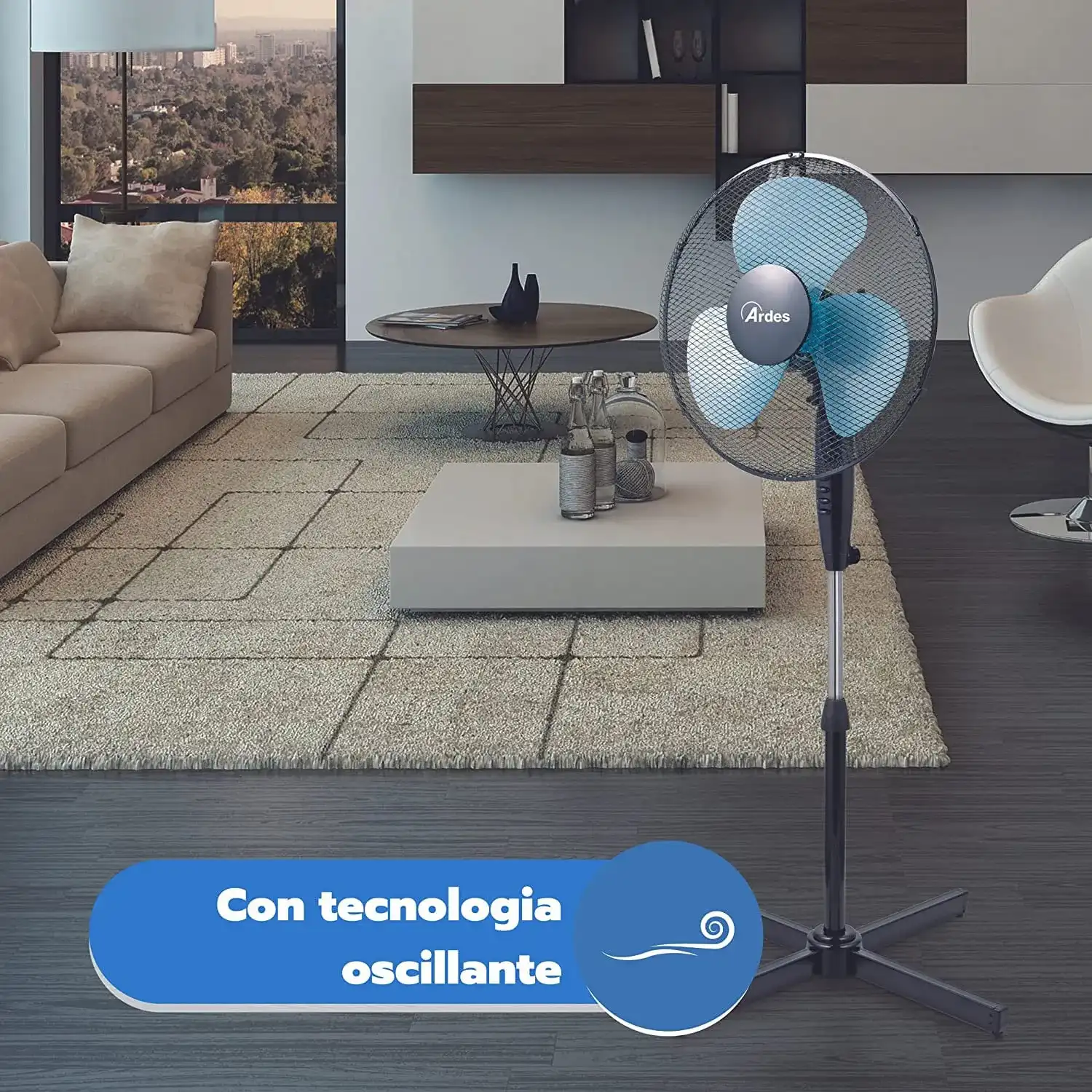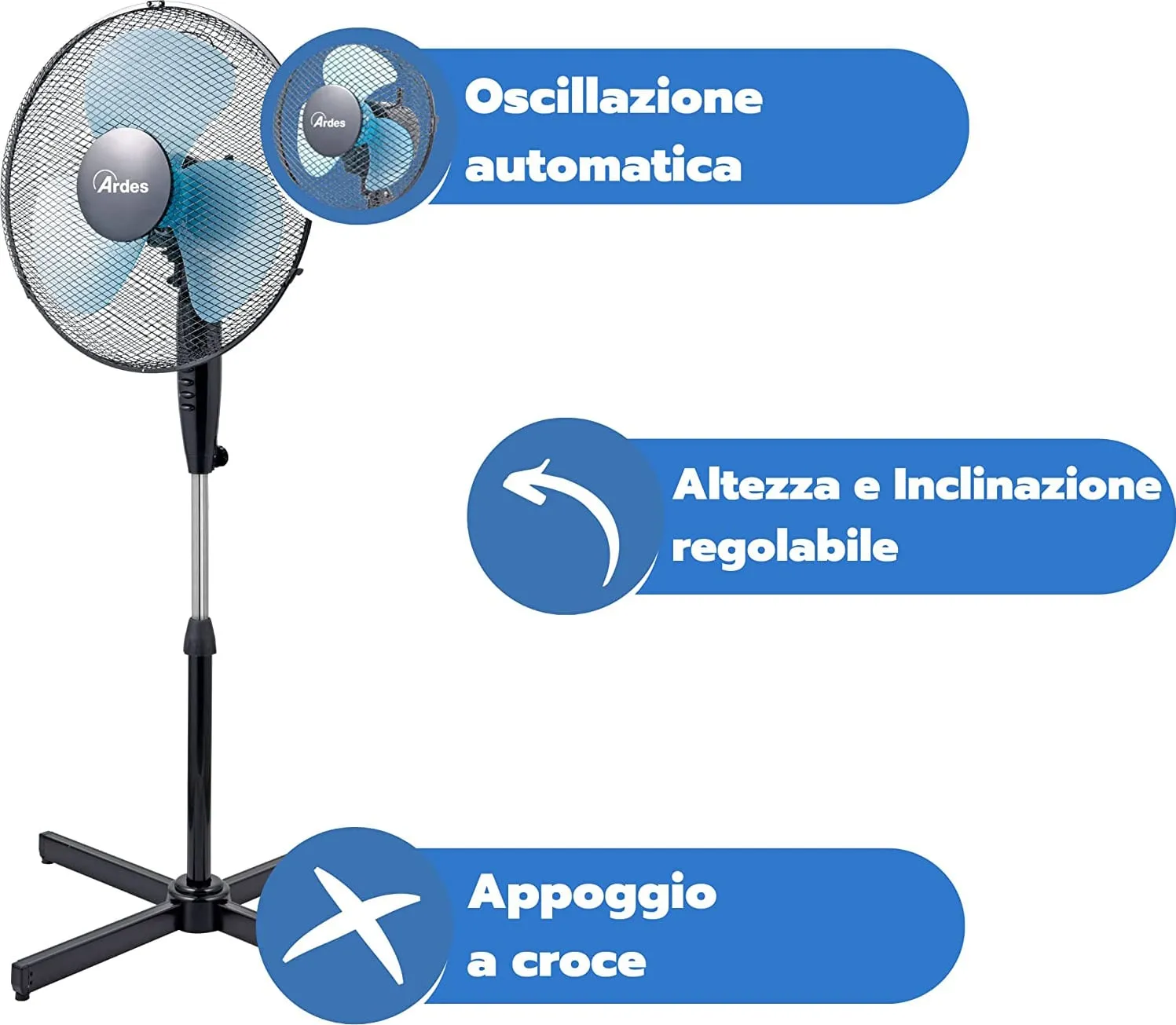 Ardes Ventilatore a Piantana da Terra 3 Pale Diametro 40 cm Oscillante 3 Velocità colore Nero - AR5EA40P Easy
