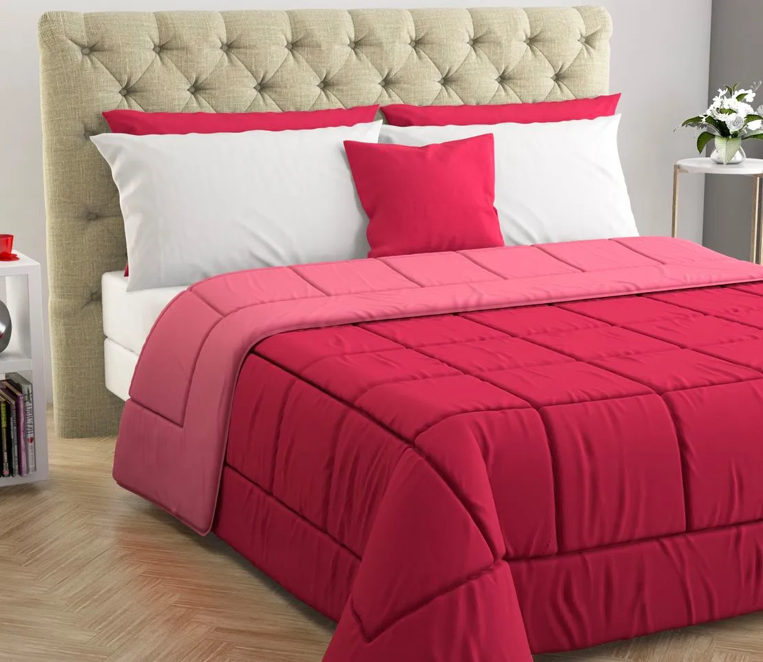 Trapunta Double Face in Tinta Unita. Imbottitura: fibra anallergica di poliestere. Grammatura: 330 gr/mq. Dimensioni: 260x260 cm. Colore: Pink / Fuxia.