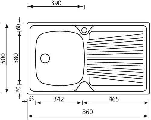 Cm Lavello Cucina 1 Vasca con Gocciolatoio SX in Acciaio Inox 86 x 50 cm - 011553.D1.01.2016