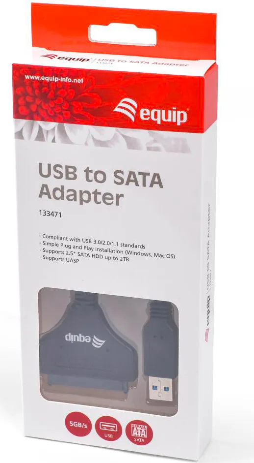 Equip 133471. Connettore 1: USB 3.0 A, Connettore 2: SATA, Genere di connettore: Maschio/Maschio, Lunghezza cavo: 0,5 m. Colore del prodotto: Nero