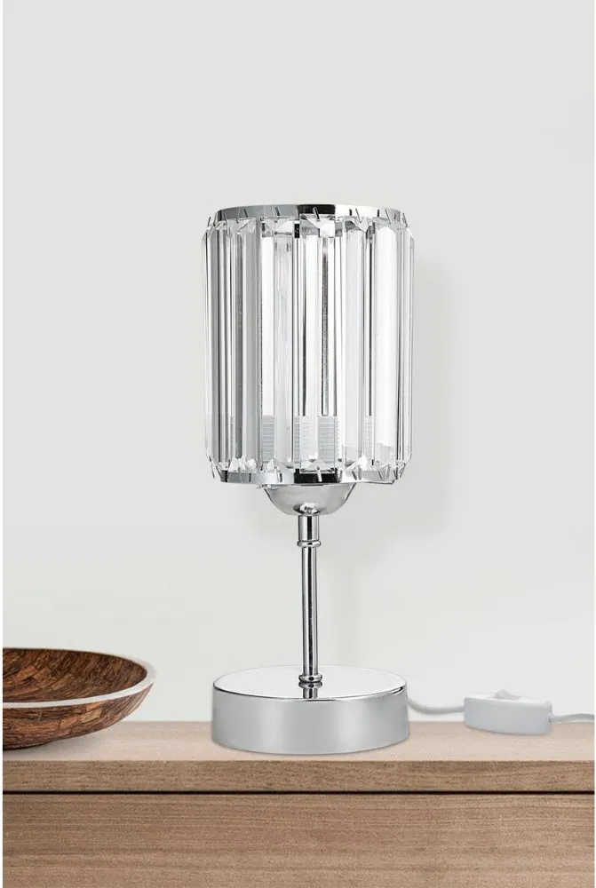 Dechome Lampada da Tavolo Stile Moderno in Metallo Cromato Base con Paralume Cristallo Attacco E27 Dimensioni Ø13.5x32 cm colore Cromato - Alis