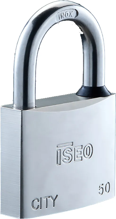 Corpo monoblocco in ottone nichelato e satinato, arco inox, anello in gomma per la protezione dei meccanismi interni. Particolarmente adatto per applicazioni esterne ed in ambienti umidi e piovosi. Completo di 3 chiavi.