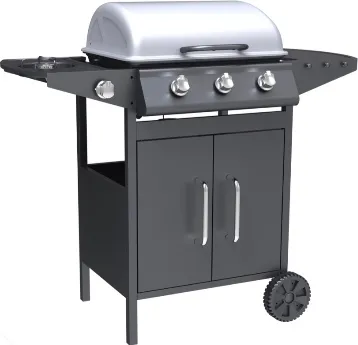 Pyramidea Barbecue a Gas da Giardino BBQ da Esterno con 3 Bruciatori + 1 Bruciatore Laterale Griglia in Acciaio Inox Coperchio e Ruote - BBQ3PL1