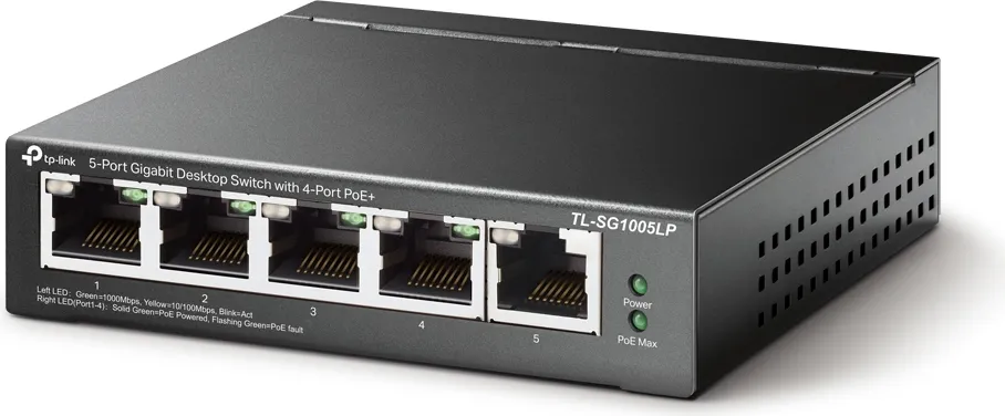 TP-Link TL-SG1005LP, Non gestito, Gigabit Ethernet (10/100/1000), Supporto Power over Ethernet (PoE), Montabile a parete